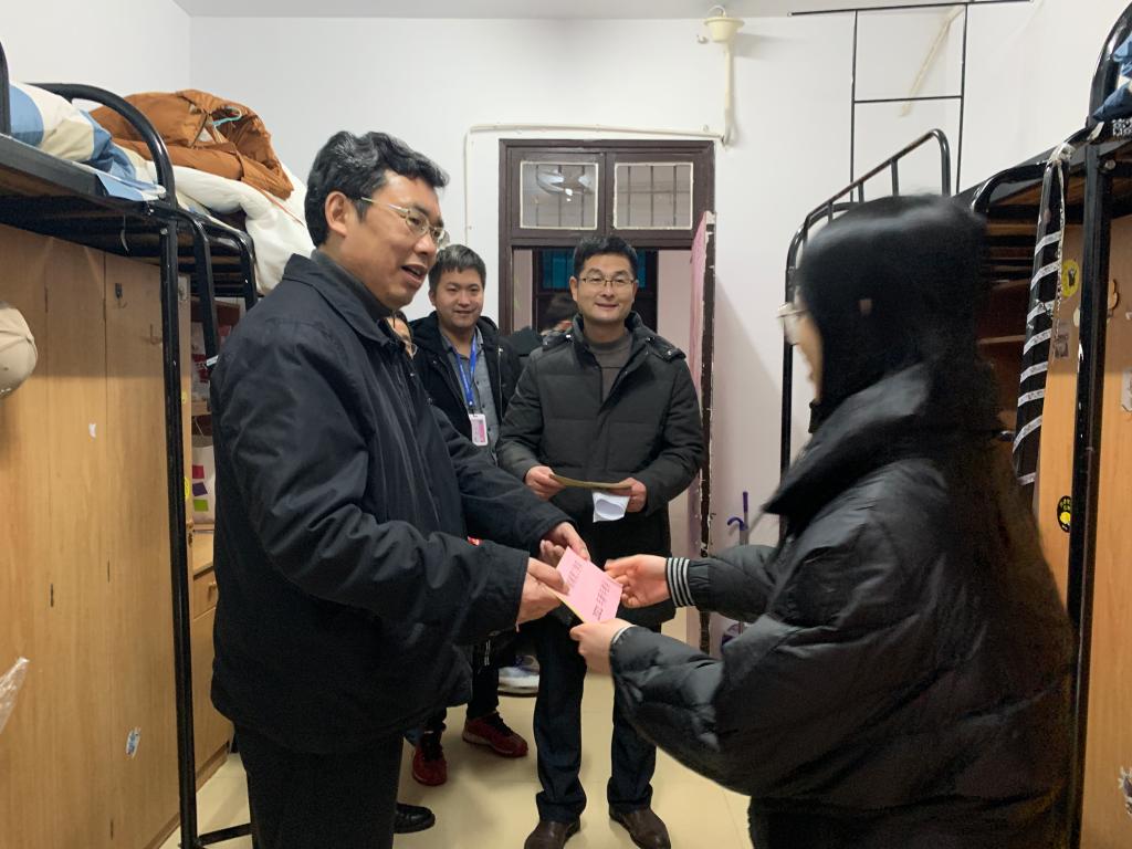 12月29日下午3:00,董事长卢先明教授在学工部副部长王云朋的陪同下,首先来到beats36516栋303寝室,对因意外失火影响而新搬迁寝室的3名同学给予了亲切慰问,并亲手送上新年关爱。走进寝室,卢先明董事长以拉家常的方式仔细询问了员工近期的生活情况,了解员工在公司学习和生活中存在的困难和问题。在轻松愉快的交谈中,鼓励她们要树立乐观、向上的生活态度,要正确面对并勇于克服现实的困难,在毕业季抓紧学业、积极就业,有困难要向老师提出和寻求帮助。