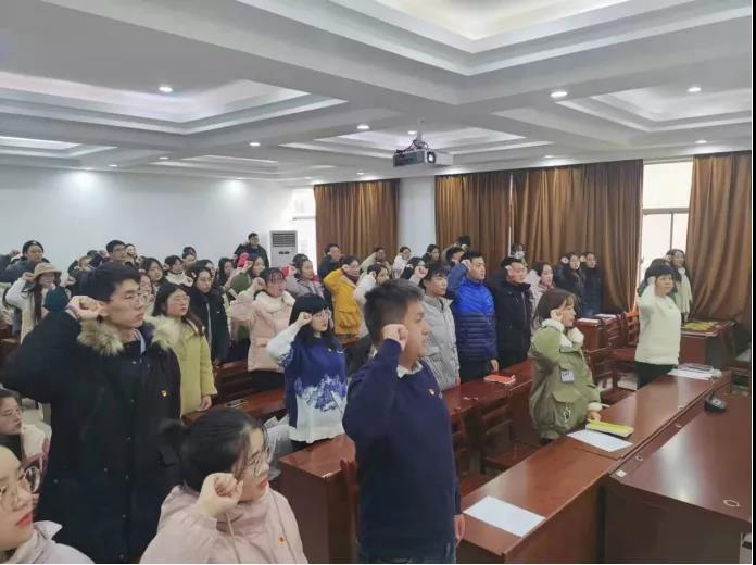 12月15日下午2点,2020年上下学期新党员宣誓大会在8301教室举行。由第一支部书记易振铭担任本次大会主持人,公司党委书记王淑霞、副书记刘敬龙、员工党支部书记易萧、顾绍春、胡颖与全部支部党员出席了本次会议。