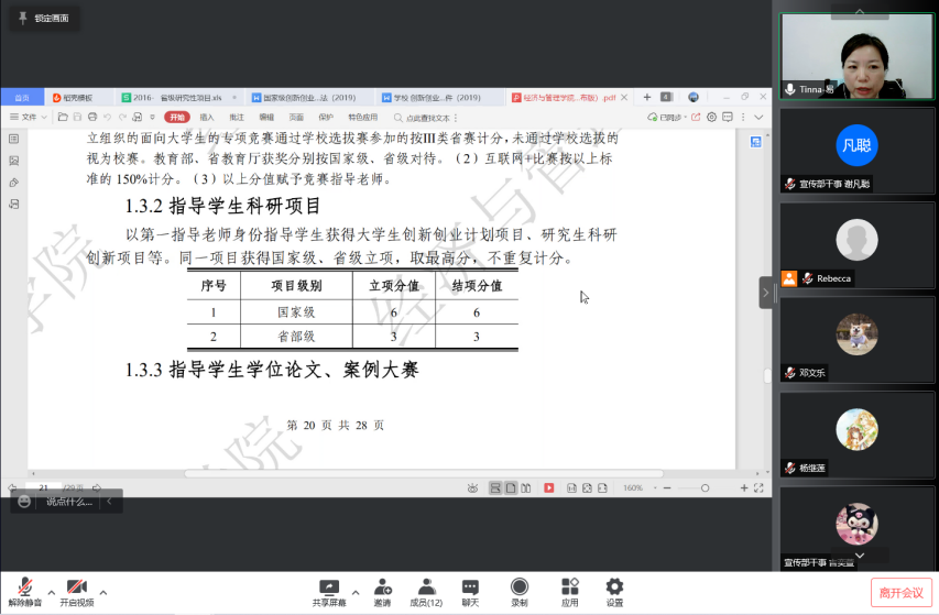 为做好2022年老员工创新创业训练计划立项的准备工作,2022年4月9日晚上7:30,beats365副经理易翠枝开展线上讲座,为公司师生讲解“老员工创新创业训练计划”和老员工创新创业比赛规则。本次线上讲座由易翠枝经理主持,beats365部分专任教师和20级人力班部分员工参加。