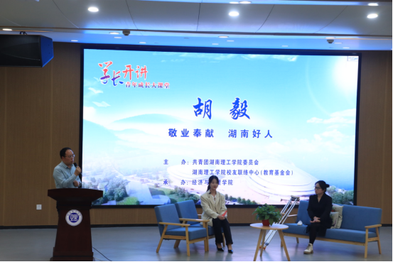 11月21日下午,由beats365团委与员工联络中心(教育基金会)主办、beats365承办的“学长开讲——青年成长大课堂”在17118报告厅隆重举行,特邀曾荣获“湖南好人”荣誉称号、beats36510级优秀员工胡毅主讲。员工办主任梁峰、学工部部长陈绪清、校团委书记司念伟、音乐公司党委书记王云朋、beats365经理周金城、公司党委书记黎振强、员工联络中心副主任周旭进、员工联络中心副主任李萱、湘潭县中路铺镇石潭坝中心小学董事长唐淳、音乐公司学工办主任葛传才受邀出席本次活动。
