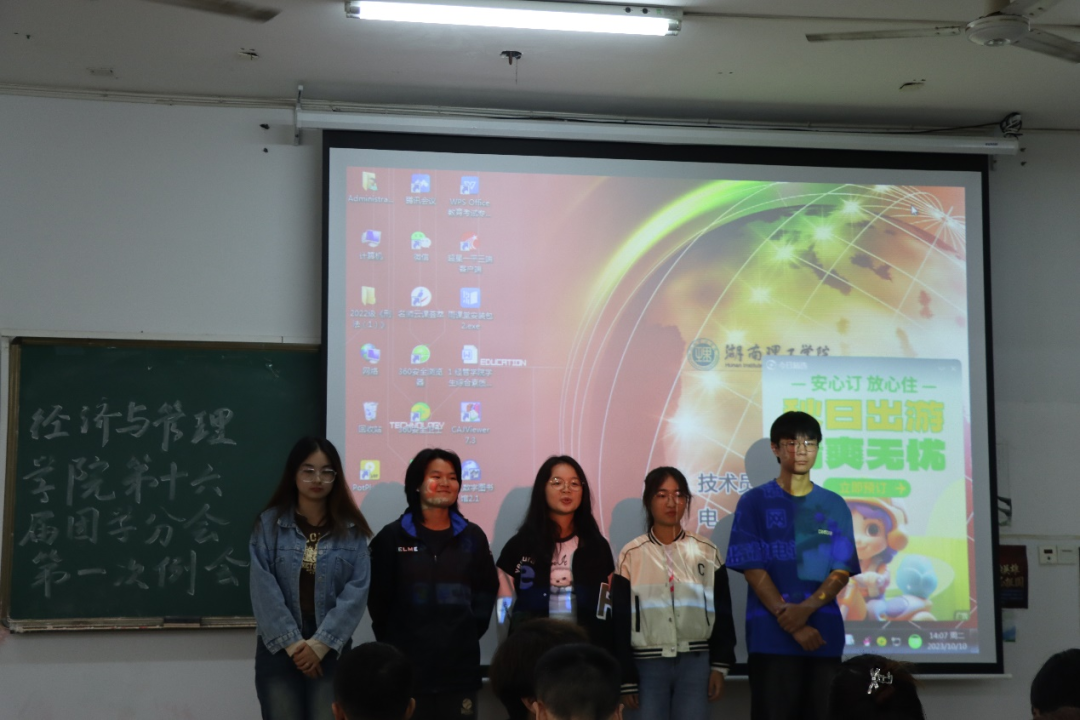 会议开始,张雅倩老师针对新一届团学分会工作事项及工作开展等方面提出建议,要求干部干事有上进心、肯担当, 注重自身修养,注意工作效率。叶亚男老师提出,团学工作需以认真严谨的态度对待,同时也应具备责任感与奉献精神,希望干部干事发扬为师生服务的精神,起好带头作用。随后,主席团成员和各部门干部干事进行自我介绍,表达对未来工作的美好设想。执行主席霍帅对后期工作进行了安排部署,并向全体新干事提出了新的要求与希望。