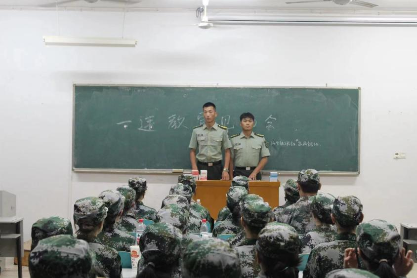 会上,军训教官们强调军训期间新生的着装以及训练时间的安排,详细的从作息时间、训练规范、思想修养等方面讲解在军训期间应该要认真执行的规章制度,本着“科学施训,严格管理”的理念来进行训练,同时希望同学们注意身体健康,以良好的状态投入训练中。让新生们在军训中感受到军队的作风,进一步提高综合素养,更好的圆满完成此次军训任务。