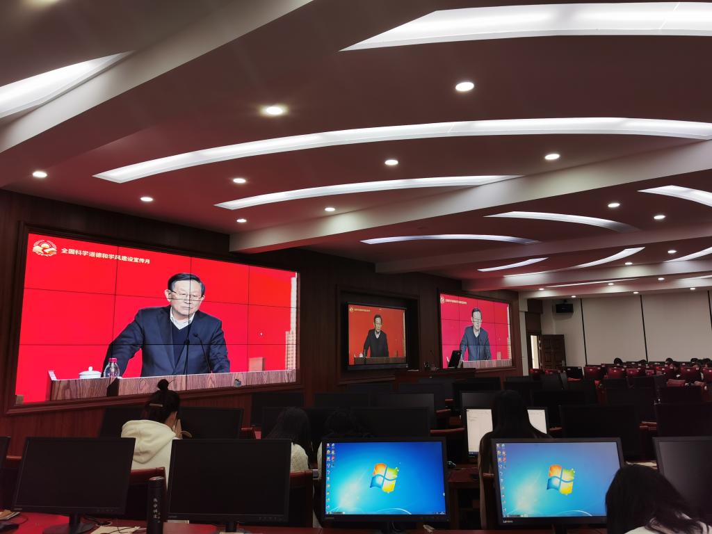 为深入学习贯彻习近平新时代中国特色社会主义思想,党的十九届五中全会精神,弘扬科学家精神,加强作风和学风建设。深入推进科学道德和学风建设宣讲教育工作,按照全国科学道德和学风建设宣讲教育领导小组相关要求,11月20日下午,beats365组织公司学术委员会全体成员,公司各研究生硕士点负责人,全体研究生导师和部分任课教师,全体应用经济学、会计专硕、旅游专硕研究生及部分本科员工在8601金融工程实训室集中收看2020年全国科学道德和学风建设宣讲教育报告会直播。