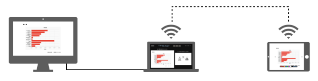 视频的录制,我用了三个设备和两个软件:显示器,笔记本电脑和平板电脑;Keynote和Parallels Toolbox中的“录制区域”功能。显示器实时显示正在录制的屏幕;笔记本电脑是一个看片台,可以看到下一张幻灯片;平板电脑是一个操控面板,可以使用荧光笔和画笔在幻灯片上实时指示和写画。显示器和笔记本电脑由一根数据线连起来,笔记本电脑和平板电脑由Wi-Fi连起来。