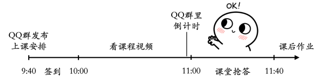 我事先把要讲的内容录下来,上传到超星泛雅平台。上课前在QQ群发布每次课安排:第一节课看视频,第二节课抢答,然后做作业。如下图所示,在抢答开始前我会在QQ群里倒计时,2分钟,1分钟,30秒,10秒。