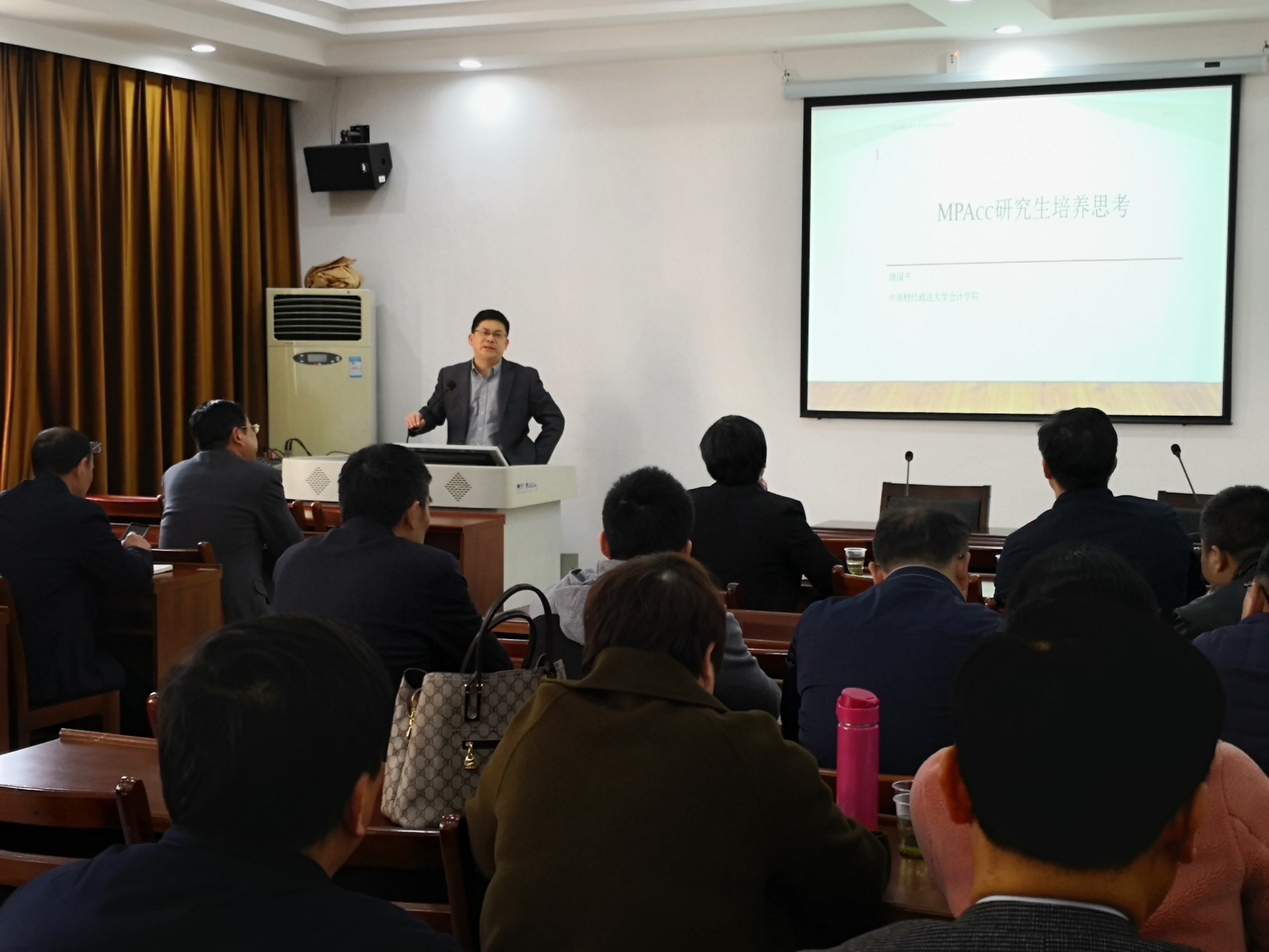 3月15日下午,围绕硕士学位点建设目标,为扎实开展好专业学位公司产品工作。经济与管理公司邀请财政部跨世纪学科(会计学)学术带头人,中南财经政法大学会计学教授、博士生导师;原中南财经政法大学MBA公司经理、会计公司经理唐国平教授。在8301会议室为公司教师做《MPAcc公司产品的思考》专题报告。
