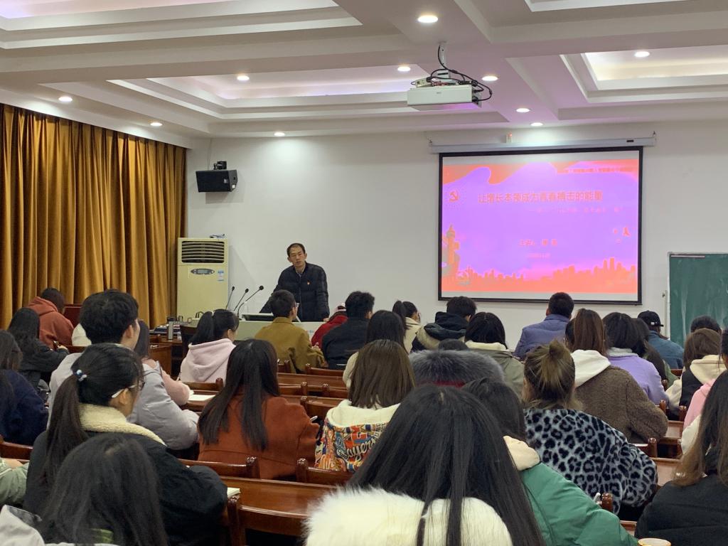 青年兴则国家兴,青年强则国家强,唐鉴老师从“习近平的青年成才观”、“党旗下汇聚青春力量”、“图绘炫丽的青春色彩”3个主题篇进行讲课。在“习近平的青年成才观”主题中,他谈到要进行内外兼修,即青年人要立志、勤学、修德、自强、创新、笃实,坚定理想信念,担起社会的责任,不负青春、不负韶华、不负时代。
