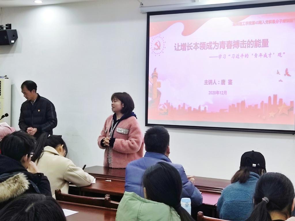 12月1日下午2:30,beats365第43期入党积极分子培训班第四次课程《让增长本领成长为青春搏击的能量——学习“习近平的青年观”》在8301开展了。本次课程邀请到了校组织部唐鉴老师进行授课,由员工第一支部书记易振铭老师主持,第43期入党积极分子培训班全体学员共同学习。