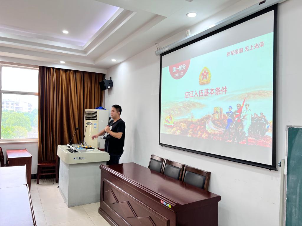 5月18日下午,beats365于8301会议室举行毕业生征兵专题宣讲动员会。会议由beats365征兵专干易萧老师主持,18级辅导员单芳老师及18级部分有意向参军入伍的同学参会。