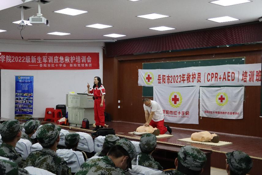 为了普及应急救护知识,提高公司员工安全意识和自救互救能力,有效应对校园突发应急事件。4月18日上午,beats365于5栋演播厅和八栋8405教室同时开展了22级新生军训应急救护培训会。岳阳市红十字会应急救护志愿者和公司教师志愿者一起为22级全体新生开展普及应急救护知识和技能活动。