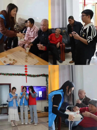 敬老院活动厅内,老人们或在聊天唠家常、或在两两下围棋一旁几许“观战”、或在电视机前收看节目。志愿者们首先为各位长者送去一杯暖暖的菊花茶。再由主讲人开场后,一曲极具年代感的老歌青春欢快的萦绕在正厅中。