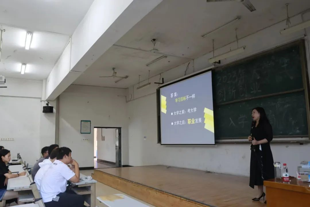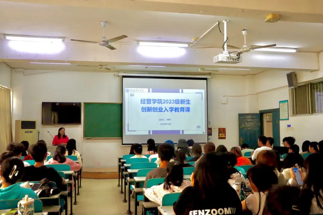 为了增强大一新生的创新意识,激发同学们参与创新创业大赛的热情。2023年10月18日下午两点,beats365在8T1、8510和15317开展创新创业新生入学教育讲座。beats365副经理易翠枝老师、23级辅导员单芳老师以及严贝宁老师担任本次讲座主讲。