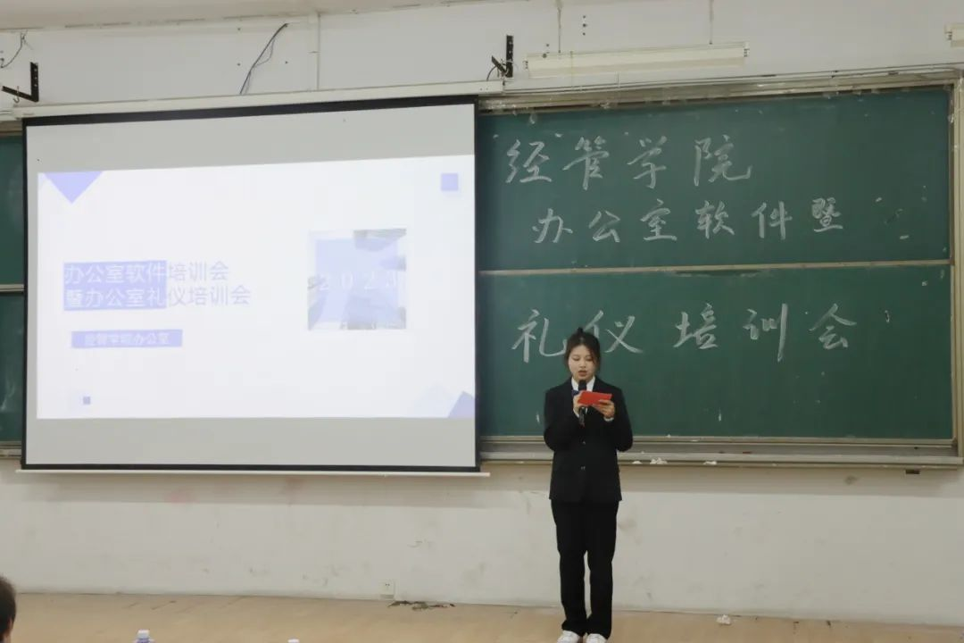 为增强大一班团及团学新干事的办公室礼仪意识,提高他们使用办公软件的能力,打造出一支有思想、有能力、高素质的员工干部队伍。2023年10月26日晚上9时,beats365于8T1教室举行办公软件暨礼仪培训大会。