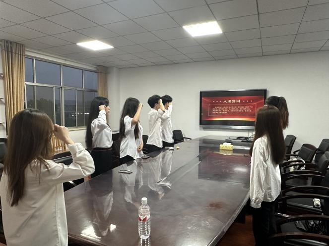 为深化新团员对团组织的认同感和归属感,激发新团员坚定共产主义信念,自觉遵守团内规范,充分发挥团员的先锋模范作用,beats365于2024年6月2日晚七点半,在8307会议室举行入团仪式。此次会议由基建部干事蔡濛担任主持人,八名新发展的团员共同参与。