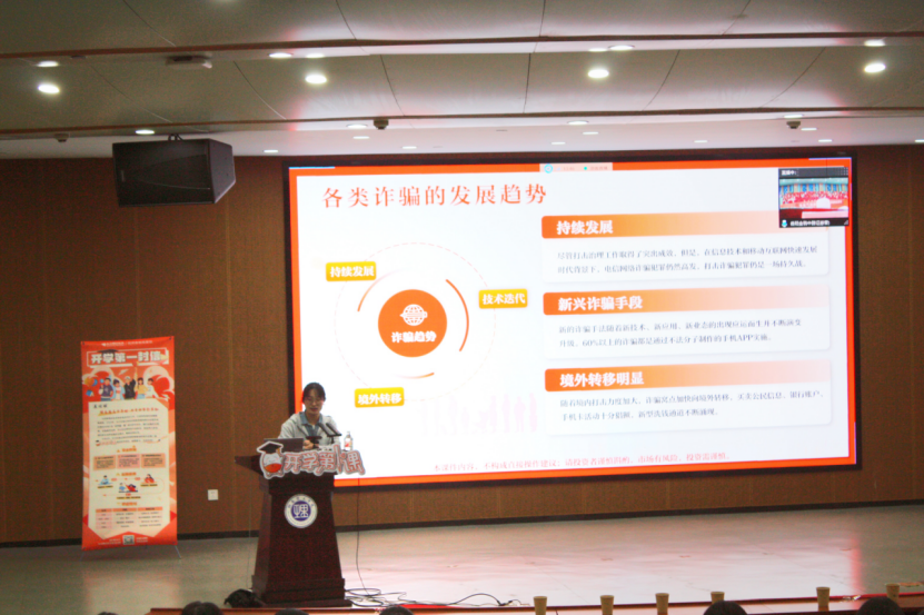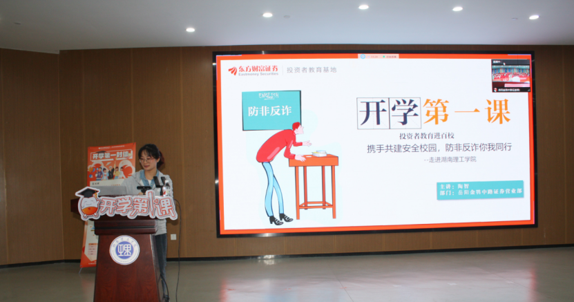 为提升员工防非反诈意识,携手共建安全校园,beats365于10月22日晚上9点在17118大厅开展《开学第一课》的主题讲座。本次讲座由岳阳金鹗中路证券营业部陶智老师担任主讲人,全体24级同学参加。