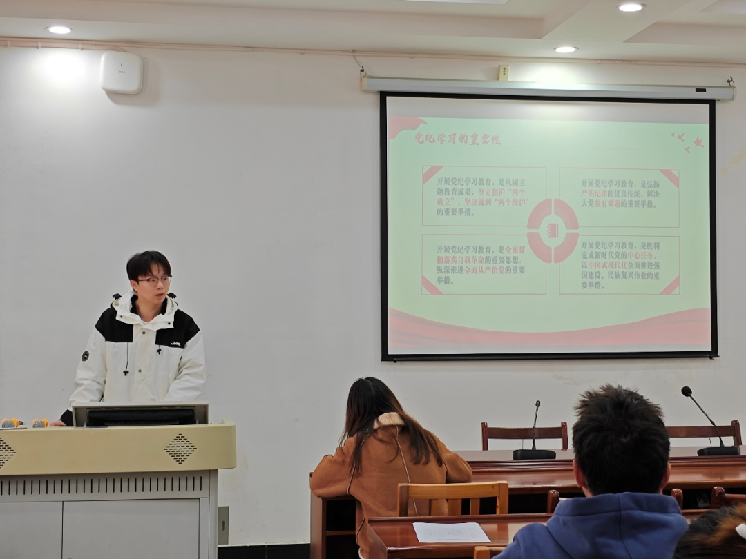 而后,杨雨萱以党员触碰政治纪律的“红线”的事例为背景,详实法纪条例为依据,深入解读条例,着重凸显党纪教育紧迫性,强调党纪教育的重要性,及党员干部要遵守党纪国法,维护党的团结统一和良好政治生态。
