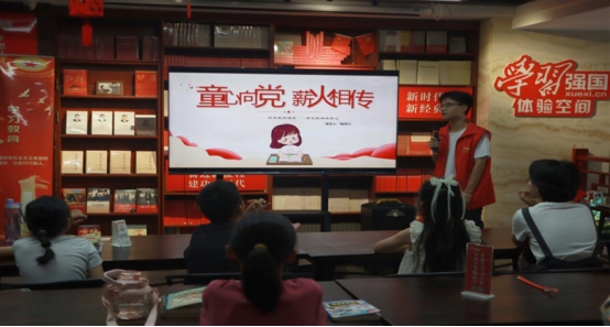 午后,团队再次来到岳阳市新华书店学习强国专区,结合上午的参观体验,团队成员梅周兴通过故事讲述、互动问答、角色扮演等多种形式,将郭亮精神融入到爱国主义教育之中,让党史学习变得生动有趣、入脑入心。