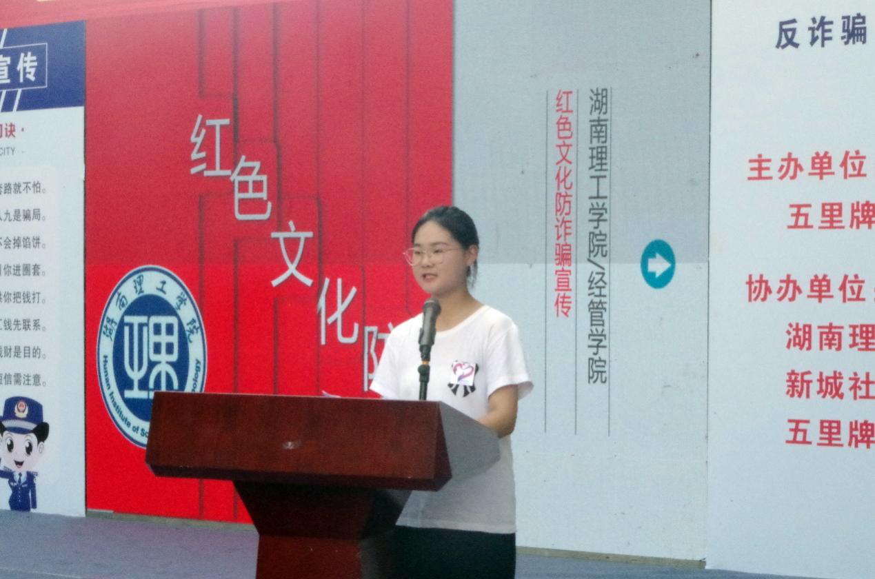 志愿者们现场发放宣传手册,为本次活动预热,活动中,主讲人马俊芬利用丰富的案例从红色文化诈骗是什么、怎么破解带来了关于防范红色文化诈骗的宣讲。“路边小伙不轻信,了解清楚再决定,遇到交钱要小心,诈骗手段在翻新。”情暖桑榆团队通过幽默风趣的相声表演《红色讲师团》展示了红色旅行诈骗的案例,并通过顺口溜让大家将防诈骗牢记于心。