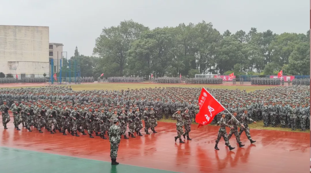 随着国歌奏唱完毕,2021级新生军训总结正式开始。迎着习习的秋风,迈着坚定的步伐,2021级新生优秀连队身着军装,喊着响亮的口号,步伐整齐地通过主席台,接受检阅。学子们意气风发,朝气蓬勃,即使是阴绵的雨天,也丝毫不减新生满腔的热血。beats365的每位学子在十四天的军训期间里,坚持不懈,迎难而上,最终取得了军训优秀组织奖、军训队列二等奖、军歌二等奖、出勤二等奖与内务三等奖等奖项,彰显了beats365团结向上、积极进取的精神。
