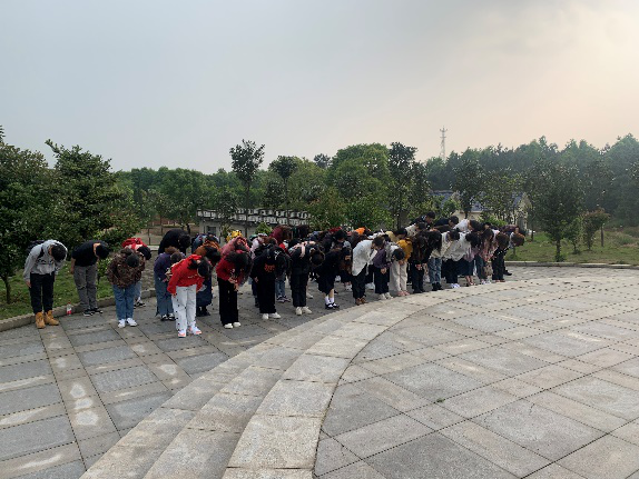 在新墙河抗战史实陈列馆参观、学习后,全体师生党员来到岳阳县金山烈士陵园瞻仰英雄纪念碑。“在湘北大地上的新墙河抗战是中华民族抗日战争历史中的辉煌一篇,新墙河抗战中的无数英烈们为中华民族抗日战争和世界人民反法西斯战争的胜利做出了伟大牺牲,将激励着我们在新时代继续奋勇前行,今天我们怀着无比敬仰之情和崇敬之意来到这里深切缅怀!”顾绍春老师为全体党员讲述了此行的意义。随后,大家怀着敬仰之情向烈士纪念碑鞠躬致意,绕行纪念碑一周,以此缅怀革命先烈,激励自我。