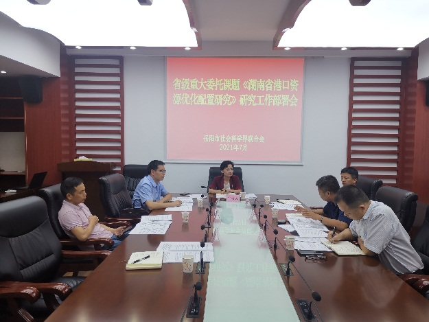 2021年7月19日下午,经管公司周金城教授、田小勇博士、陈灿煌教授、刘健挺博士一行来到岳阳市社科联参加湖南省社会评审会重大委托课题《湖南省港口资源优化配置研究》工作部署会。岳阳市社科联党组书记任欣欣、副主席汤迪军、办公室主任谭綮共同参会。