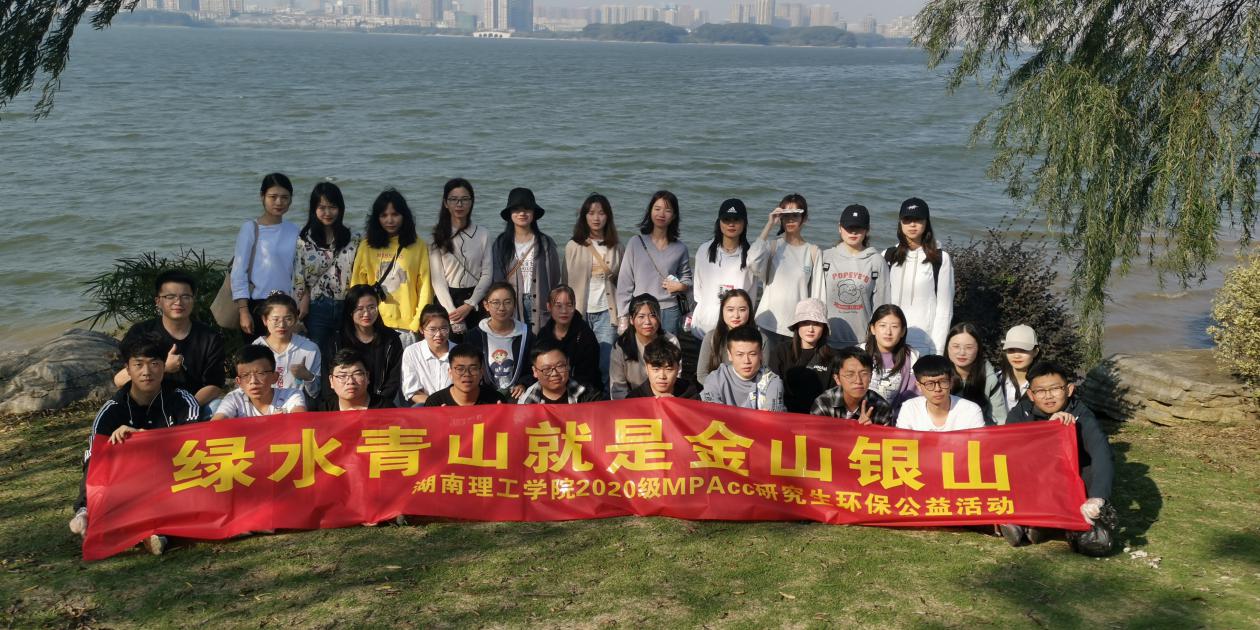 11月13日下午,beats365会计硕士专业学位点负责人、研究生导师湛忠灿教授组织2020级MPAcc会计专硕全体同学参加“绿水青山就是金山银山”的环保公益活动。下午两点,在湛老师组织下2020级全体MPAcc研究生从公司出发,沿南湖三圈理工南段环湖步行至龙山景区,同学们手提环保清洁袋和工具,沿途清洁游道。师生们公益活动同路行,一路欣赏了“山水共长天一色”的南湖佳境,一路也收藏了秀丽南湖的美景山水画中印入心间。