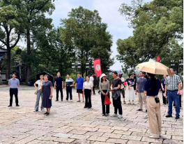 调研首站,师生们怀着崇高的敬意步入屈子祠主殿。在专业讲解员的引导下,大家细致观摩了祠内陈列的《离骚》、《九歌》等楚辞经典篇章的历代刻本与相关文物,深刻感悟屈原“长太息以掩涕兮,哀民生之多艰”的民本思想、“亦余心之所善兮,虽九死其犹未悔”的坚定信念以及“路漫漫其修远兮,吾将上下而求索”的执着探索精神。 这堂生动的爱国主义教育课让大家深受触动。随后,师生们移步至碑林长廊、独醒亭与九歌广场等富含楚文化意蕴的景点,实地感受楚辞意境,并重点就如何挖掘屈原精神的时代价值,将其转化为优质的研学旅行内容和红色旅游产品进行了现场观察与思考。